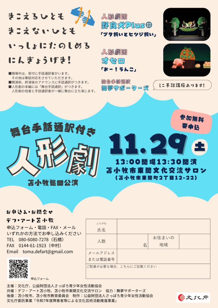 [広報協力]舞台手話通訳付き人形劇苫小牧巡回公演!